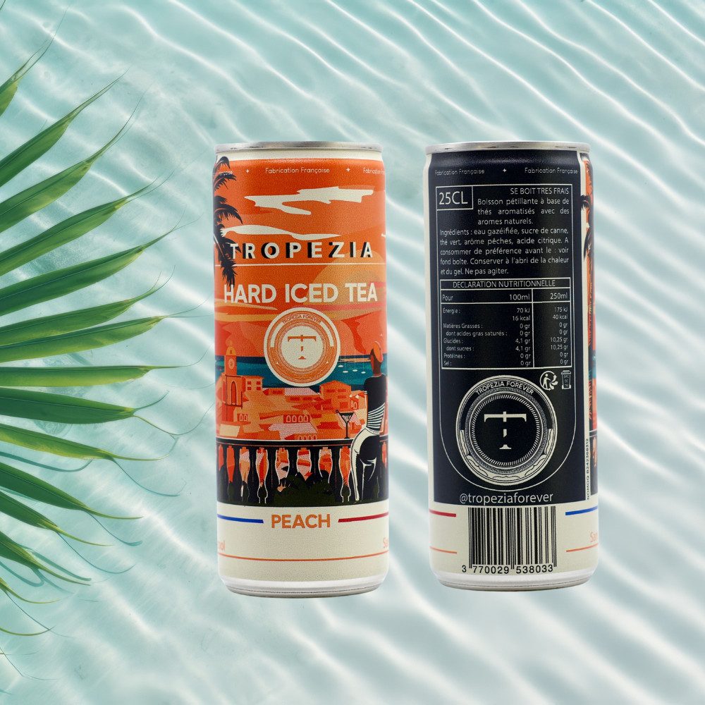Découvrez Tropezia Peach, votre nouvelle boisson pétillante qui allie fraîcheur et légèreté.